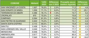 Ma il dato più significativo è il netto miglioramento dei dati rispetto allo scorso anno: la quantità di secco residuo passa da 85,5 kg a 79,9 kg con una diminuzione di 9,6 kg per ogni singolo cittadino mentre la percentuale di raccolta differenziata passa da 69,5% a 65,9% con un aumento del 3,6%.