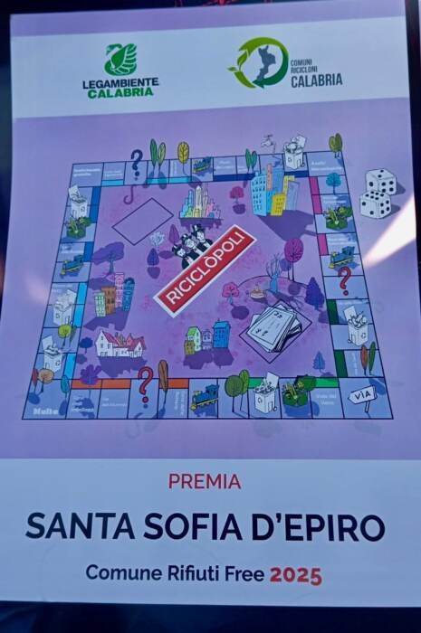 🟣 Santa Sofia d’Epiro riceve il riconoscimento “Comune Rifiuti Free” 2025.